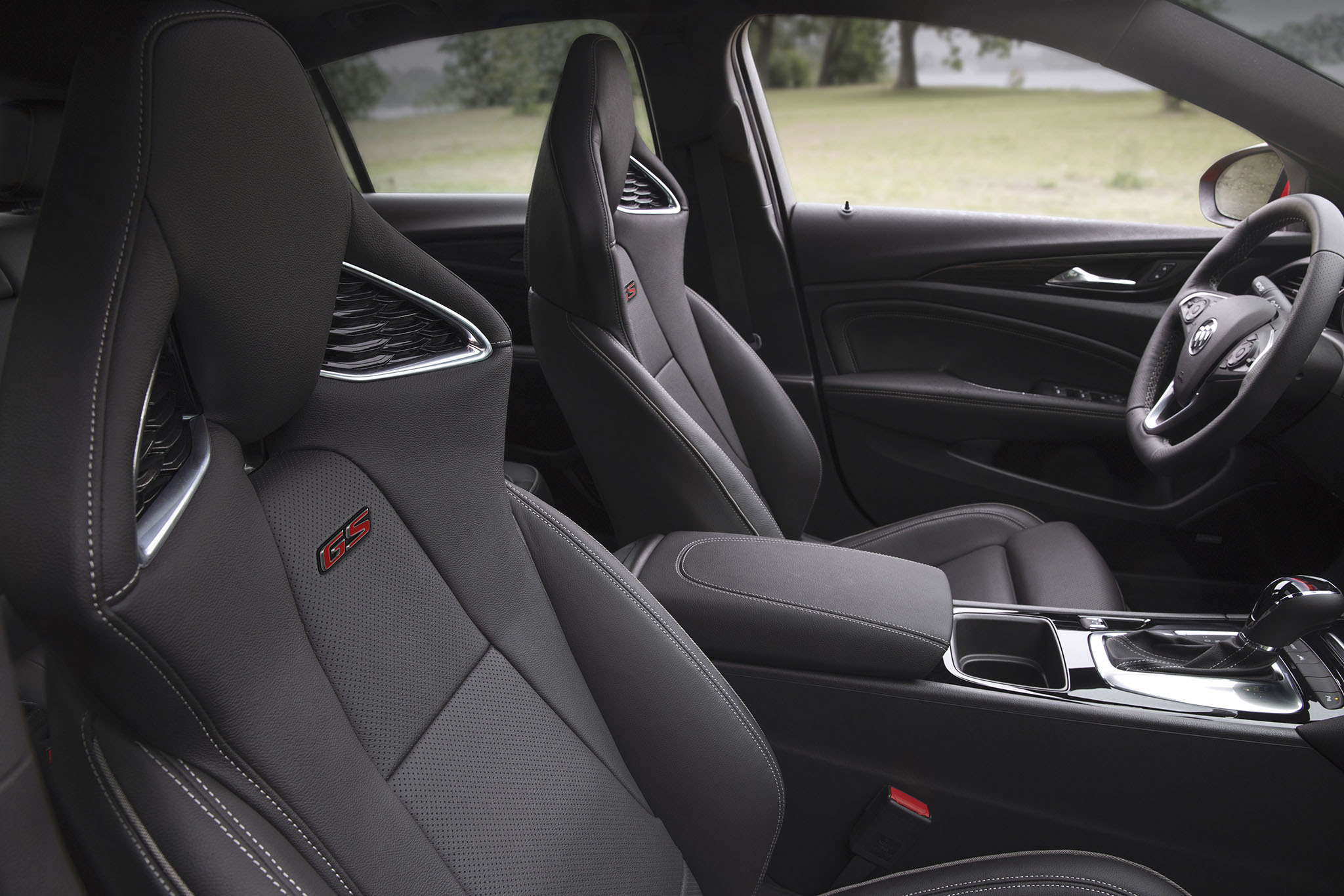 Helping in the handling department is an all-new five-way multi-link rear axle and MacPherson struts up front, assisted by GS-equipped Continuous Damping Control, or active suspension. When enabled in GS or Sport modes, Buick says it can adjust the shocks up to 500 times per second. Shaving off that power are Brembo brakes once again, wrapped in 19-inch wheels.